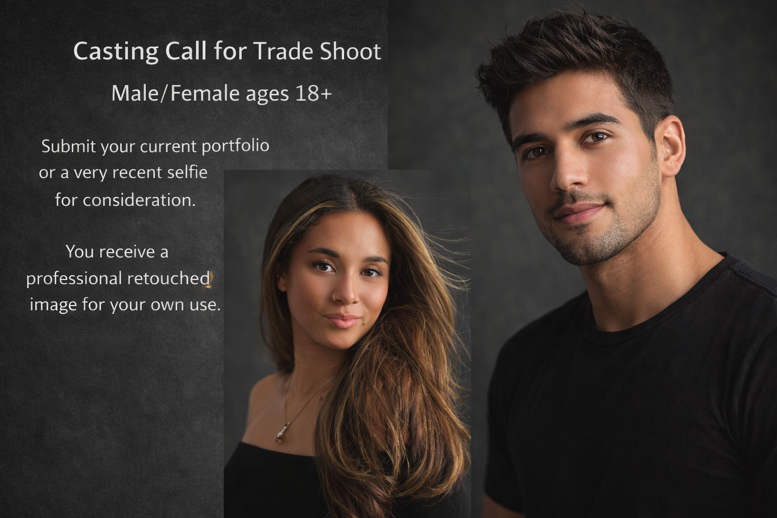 This series is focused on a high-contrast, window-inspired lighting style, featuring subtle side lighting to shape the face and, when appropriate, gentle wind movement in the hair. In exchange for their time, selected participants will receive a complimentary, professionally retouched image for personal use.